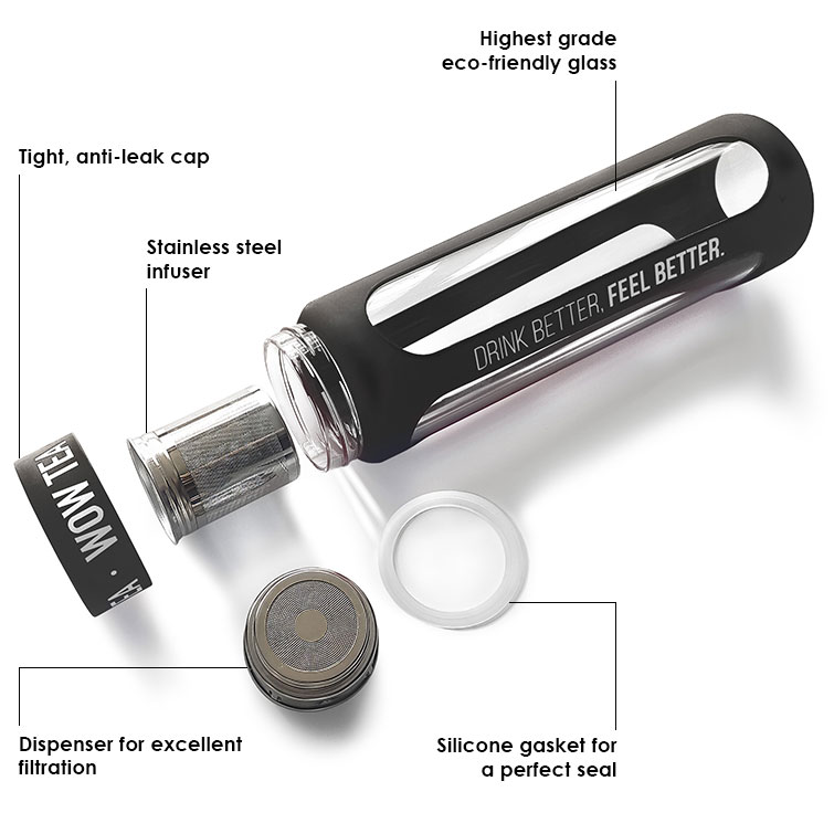 Durable, sturdy, and leak-proof, the infuser bottle retains its clarity after hundreds of washings.