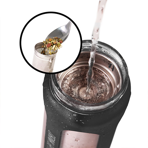 Just toss it in your bag and you’re ready to make and enjoy your tea anywhere. It’s super handy and it doesn’t leak!