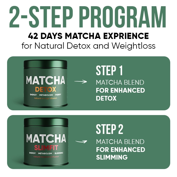 42-day program of the most effective matcha combo for 100% natural weight loss and full body detoc. It starts with Matcha Detox in the first 21 days to speed up the metabolism and flush out all the harmful toxins. Then the body is prepared for the second stage of a 21-day intake of Matcha SlimFit, thanks to which complete and long-lasting weight loss is achieved.