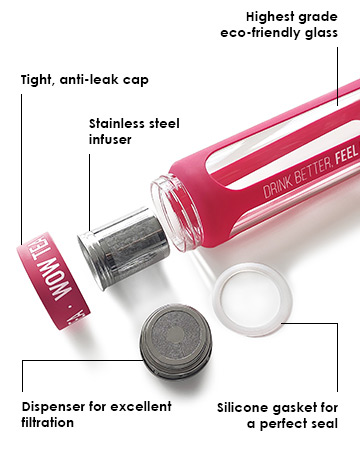 Durable, sturdy, and leak-proof, the infuser bottle retains its clarity after hundreds of washings.