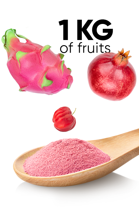 Powerfull blend of superfruits rich in antioxidants, fiber, and essential vitamins. An effective combination of the best fruits from all over the world with deep revitilizing, ditoxifying and slimming and action.