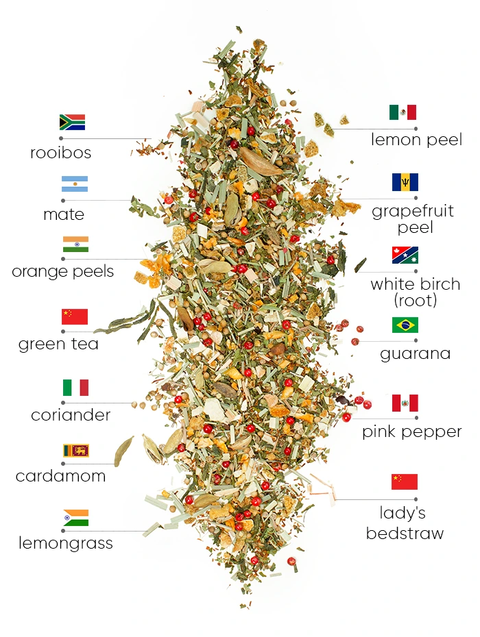 Get ready to turbocharge your summer with our new detox sensation! Based on our globally beloved classic detox formula, we’ve enriched it with powerful herbs like White Birch and Galium Verum to speed up your results because we know just how crucial it is to look flawless during the summer season. To match the delightful summer vibes, we’ve created a brand-new exotic flavor, crafted from a selection of tropical citrus – Lime, Orange, and Bergamot. This refreshing summer tea begins purifying your body of toxins and excess water from the very first sip. Loaded with antioxidants, it also offers a swift alkalizing effect, crucial for maintaining the acid-alkaline balance in your body.
